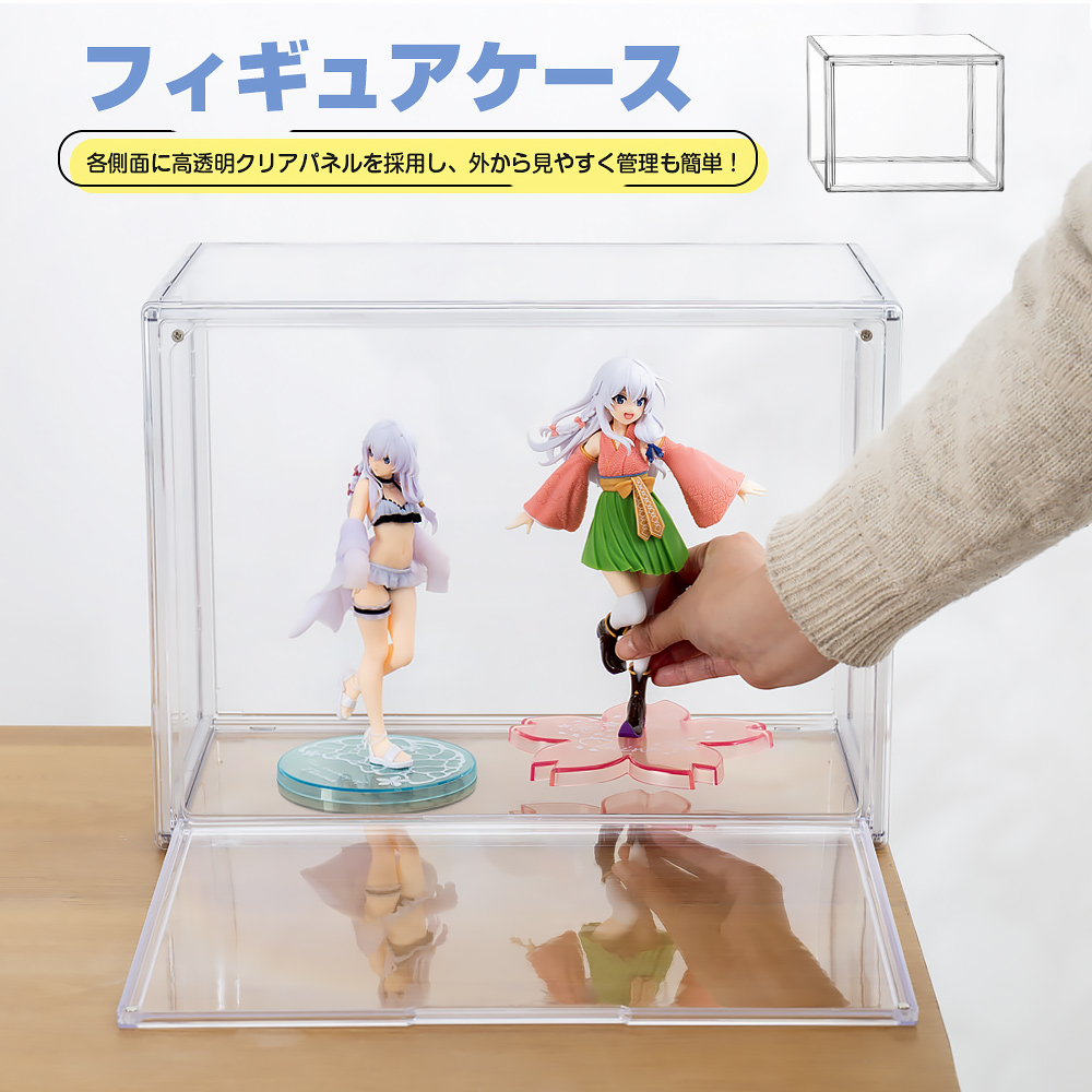 フィギュアケース 小型 収納 透明展示ケース マグネット式扉 コレクションケース 積み重ね可能 フィギュア ケース ショーケース 透明ケース 幅26.9×奥12.6×高さ23cm クリア